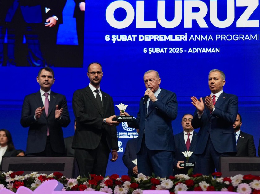 Başkanlığımızın deprem bölgesinde sürdürdüğü çalışmalar vesileyle, Başkanımız Sayın Alp, Cumhurbaşkanımız Sayın Recep Tayyip Erdoğan’ın elinden Başkanlığımız adına teşekkür plaketi aldı.